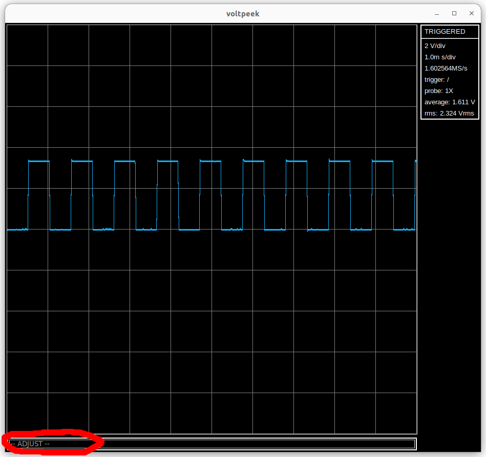 This will put voltpeek into adjust mode. This is indicated in the command input.