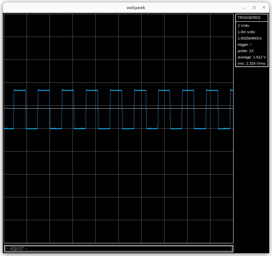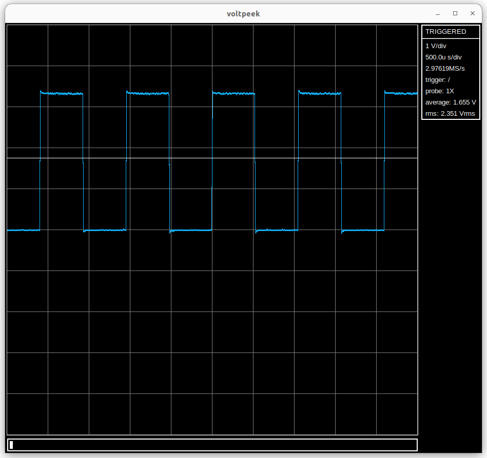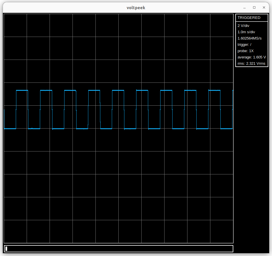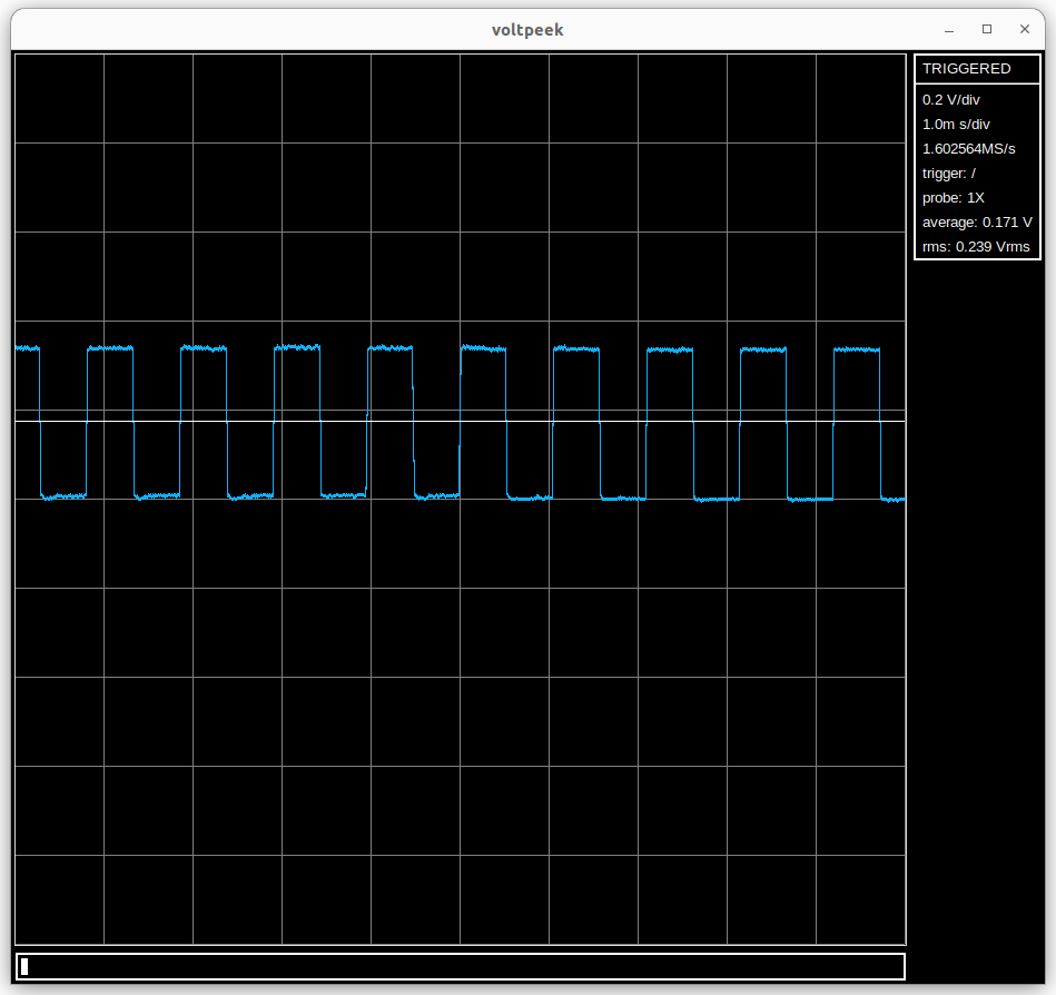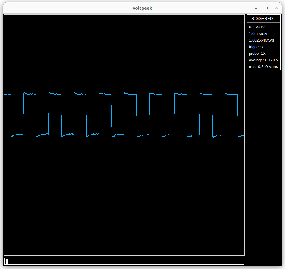 If you atrigger again, you should see a waveform similar to the following: