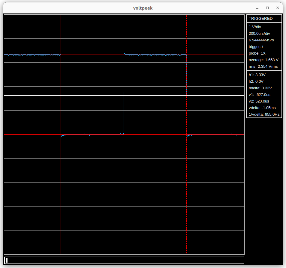 waveform showing. You can then toggle the vertical cursors with togglevcurs, the horizontal cursors with